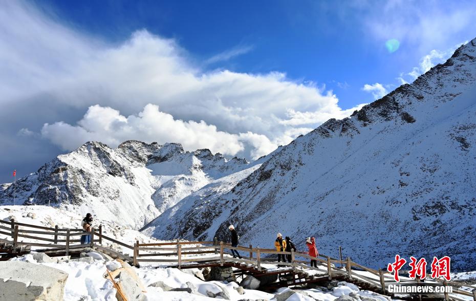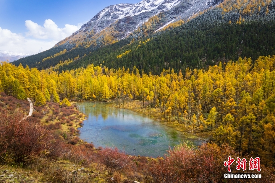 阿壩州:金黃云杉點綴白雪 小金瑪嘉溝秋色正濃